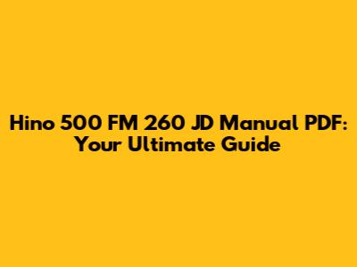 Hino 500 FM 260 JD Manual PDF: Your Ultimate Guide