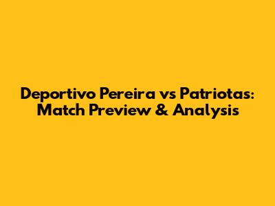 What's up, soccer fanatics! Get ready for a showdown as Deportivo Pereira gears up to face Patriotas in what promises to be an exciting clash. We're diving deep into this matchup to give you all the juicy details, from team form to key players and tactical insights. Whether you're a die-hard fan of either club or just love a good game of football, you'll want to stick around. We'll break down their recent performances, head-to-head records, and what each team needs to do to come out on top. So, grab your favorite beverage, settle in, and let's dissect this thrilling encounter!