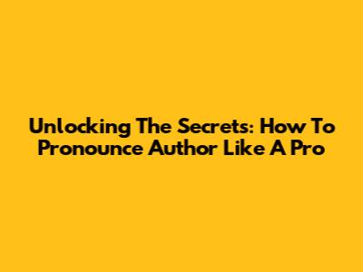 Unlocking The Secrets: How To Pronounce 'Author' Like A Pro