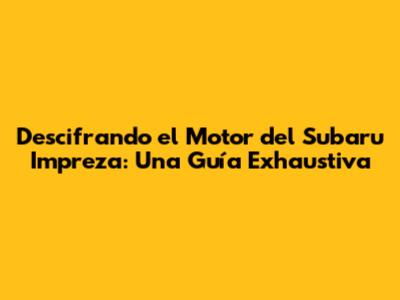 ¿Estás pensando en comprar un Subaru Impreza y te preguntas qué motor lleva? ¡Felicidades, amigo! Estás en el lugar correcto. En esta guía completa, te sumergiremos en el fascinante mundo de los motores del Impreza, desglosando cada detalle para que tomes la mejor decisión. Ya seas un entusiasta de los coches o simplemente busques un vehículo confiable, aquí encontrarás toda la información que necesitas. Prepárate para descubrir los secretos que impulsan a este icónico coche y cómo sus diferentes motores se adaptan a tus necesidades. ¡Vamos allá!