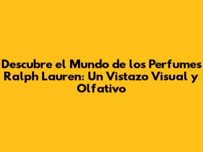 ¡Hola, amantes de las fragancias! Hoy nos sumergiremos en el fascinante universo de los perfumes Ralph Lauren, una marca icónica que ha dejado una huella imborrable en la industria de la moda y, por supuesto, en el mundo de las fragancias. Vamos a explorar juntos las imágenes de perfumes Ralph Lauren, desde sus frascos elegantes hasta sus anuncios publicitarios inolvidables. Prepárense para un viaje visual y olfativo que despertará sus sentidos y los transportará a un mundo de lujo, sofisticación y estilo atemporal.