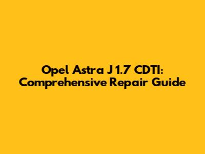 Opel Astra J 1.7 CDTI: Comprehensive Repair Guide