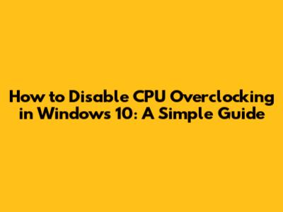 Disabling CPU overclocking in Windows 10 is a straightforward process. Whether you choose to reset your BIOS/UEFI settings or use software tools, the key is to follow the steps carefully and verify that the changes have been applied correctly. By doing so, you can ensure that your system runs at its optimal settings, balancing performance with stability and longevity. So go ahead, take control of your CPU's clock speed, and enjoy a smoother, more reliable computing experience!