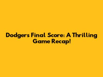 The Dodgers Final Score and What It Means for the Season