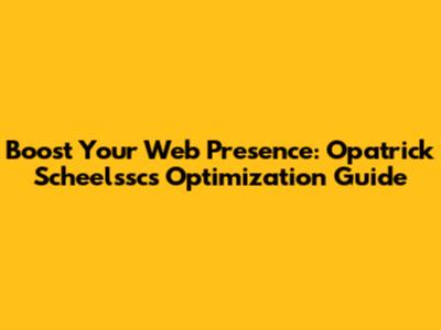 Boost Your Web Presence: Opatrick Scheelssc's Optimization Guide