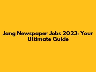 Jang Newspaper Jobs 2023: Your Ultimate Guide