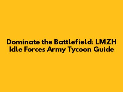 By following these tips and strategies, you'll be well on your way to conquering the world in LMZH Idle Forces Army Tycoon. Good luck, commander, and happy gaming!