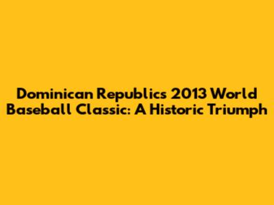 The Road to Glory: Dominican Republic's Dominance in the 2013 WBC