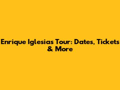 Enrique Iglesias Tour: Dates, Tickets & More
