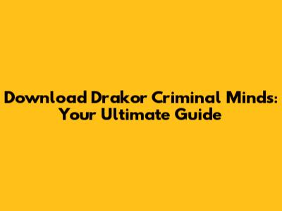 Frequently Asked Questions (FAQ) about Downloading Drakor Criminal Minds
