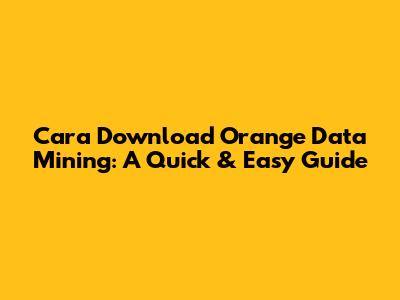 Hey guys! Are you looking to dive into the world of data mining with Orange but are stuck on the download process? No worries, I've got you covered! This guide will walk you through everything you need to know to get Orange Data Mining up and running on your computer. Whether you're a complete beginner or have some experience, this article will provide you with a simple, step-by-step approach to downloading and installing Orange. Let's get started!