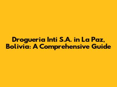 Hey there, healthcare enthusiasts and curious minds! Ever wondered about the pharmaceutical landscape in Bolivia, especially in the vibrant city of La Paz? Well, buckle up because we're diving deep into Drogueria Inti S.A., a significant player in the Bolivian pharmaceutical industry. This isn't just a simple company overview; we're talking about a comprehensive guide. We'll explore everything from its core operations and impact on the local market to its role in healthcare accessibility. So, if you're keen on understanding the intricacies of pharmaceutical distribution, manufacturing, and their implications in a South American context, you've stumbled upon the right place. This exploration aims to provide you with valuable insights, offering a clear and engaging narrative about Drogueria Inti S.A.'s presence in La Paz. Get ready to uncover the details that make this company a key component of Bolivia's healthcare system. We'll look at their history, the products they offer, and their influence on the community. It's time to become well-informed about a crucial part of the medical infrastructure in La Paz, Bolivia! Are you ready to learn about it? Let's start with a look at what Drogueria Inti S.A. is all about!