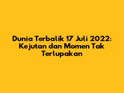 Hey guys! Pada tanggal 17 Juli 2022, dunia hiburan tanah air kembali digemparkan oleh sebuah episode Dunia Terbalik yang sungguh di luar dugaan. Episode kali ini bukan sekadar tontonan biasa, melainkan sebuah rollercoaster emosi yang penuh dengan kejutan tak terduga, kelucuan yang mengocok perut, dan momen-momen menyentuh hati yang bikin kita semua ikutan baper. Kalau kalian ketinggalan keseruannya, tenang aja, yuk kita bedah bareng-bareng apa aja sih yang bikin episode kali ini begitu spesial dan meninggalkan kesan mendalam buat para penggemarnya. Siap-siap ya, karena kita akan bernostalgia dan mengupas tuntas setiap detailnya!