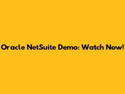 Oracle NetSuite Demo: Watch Now!