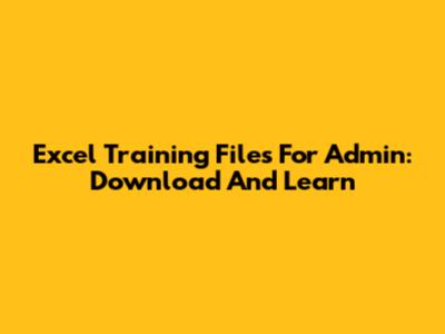 Excel Training Files For Admin: Download And Learn