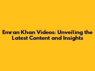 Hey everyone! Are you curious about the latest videos featuring Emran Khan? Well, you're in the right place! We're diving deep into the world of Emran Khan's video content, offering you the most recent updates, insightful analysis, and everything you need to know. Whether you're a long-time follower or just starting to explore, we've got you covered. This is your go-to guide for all things Emran Khan videos, ensuring you stay informed and entertained. Let's get started, shall we?