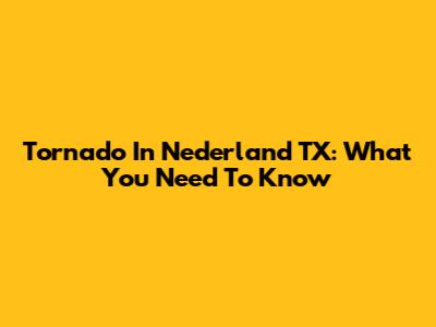 Tornado In Nederland TX: What You Need To Know