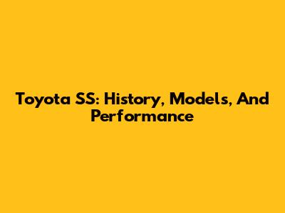 Toyota SS: History, Models, And Performance