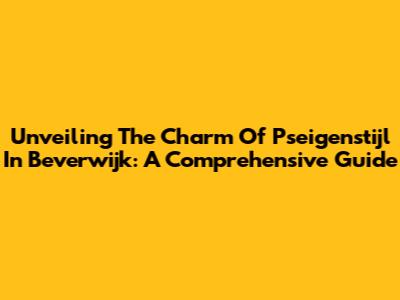 Unveiling The Charm Of Pseigenstijl In Beverwijk: A Comprehensive Guide