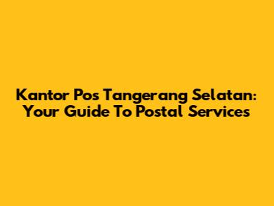 Kantor Pos Tangerang Selatan: Your Guide To Postal Services