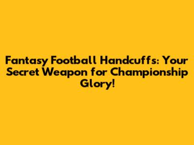 Hey fantasy football fanatics! Let's talk about handcuffs – those often-overlooked players that can be the key to unlocking championship glory. We're diving deep into the world of handcuffing in fantasy football, exploring why it's a smart strategy, how to identify the right players, and how to effectively manage your roster to maximize your chances of winning. So, buckle up, because we're about to get your fantasy football game to the next level!