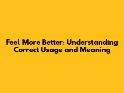 Have you ever heard someone say "feel more better" and wondered if it sounded quite right? Language can be tricky, and sometimes we use phrases that aren't grammatically correct without even realizing it. This article dives into the meaning of "feel more better," why it's often considered incorrect, and how to express the same sentiment in a grammatically sound way. So, if you're looking to refine your English and communicate more effectively, stick around, guys! We'll break it down in a super easy-to-understand manner.