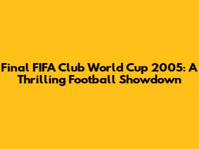 Hey football fanatics! Ever wondered about the FIFA Club World Cup 2005 final? Well, buckle up, because we're about to dive deep into a match that was packed with drama, skill, and unforgettable moments. This tournament, a true test of club football supremacy, brought together the best teams from across the globe. Let's rewind and relive the excitement of this epic showdown. The FIFA Club World Cup, a relatively young tournament at the time, was already proving to be a thrilling competition. It pitted the champions of the six continental confederations against each other. The year 2005 marked a significant edition, showcasing the global reach and the growing importance of club football on the world stage. This final wasn't just a game; it was a statement. A statement about the quality of the teams, the passion of the fans, and the evolving landscape of the beautiful game. Get ready to explore the teams, the key moments, and the lasting legacy of the 2005 FIFA Club World Cup final!