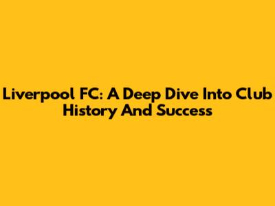 Liverpool FC: A Deep Dive Into Club History And Success