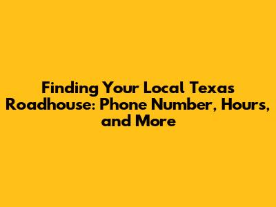 Hey food lovers! Craving some legendary steaks, fall-off-the-bone ribs, and those irresistible, freshly baked rolls with honey cinnamon butter? If you're anything like me, the answer is a resounding YES! And when that Texas Roadhouse craving hits, you need to know how to get in touch or, even better, waltz right through those doors. Let's dive into how to easily find the Texas Roadhouse phone number near you, their hours of operation, and other helpful info to make your dining experience a breeze. This article is your ultimate guide to satisfying your Texas Roadhouse desires!
