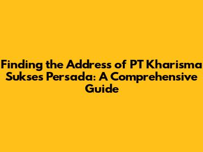 Hey guys! So, you're looking for the address of PT Kharisma Sukses Persada, huh? Awesome! Finding the right address can sometimes feel like a treasure hunt, especially when dealing with businesses. But don't worry; I'm here to help you navigate this and get you the info you need. Let's break down how you can easily locate the address of PT Kharisma Sukses Persada. We'll cover various methods, from online searches to digging into official databases, ensuring you have the most up-to-date and accurate information. Ready to dive in? Let's get started!