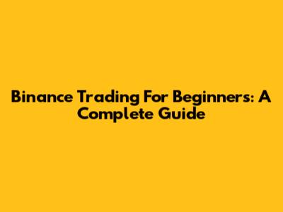 Binance Trading For Beginners: A Complete Guide
