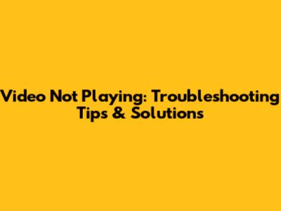 Troubleshooting Steps to Fix Video Playback Issues