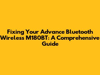 Hey guys! Ever found yourself in a Bluetooth bind, with your Advance Bluetooth Wireless M180BT acting up? Don't sweat it! We've all been there. Whether it's a connection hiccup, a sound dropout, or the dreaded complete silence, this guide is your go-to resource. We're diving deep into Advance Bluetooth Wireless M180BT repair, exploring common issues, and offering practical solutions. Forget expensive repairs or tossing your device; let's get you back to enjoying your tunes and calls without a hitch. This article is your ultimate companion, packed with troubleshooting tips, easy fixes, and a step-by-step approach to keep your audio experience smooth. Get ready to troubleshoot and fix your Advance Bluetooth Wireless M180BT issues.