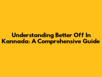 Understanding 'Better Off' In Kannada: A Comprehensive Guide