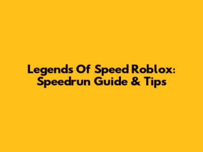 Legends Of Speed Roblox: Speedrun Guide & Tips