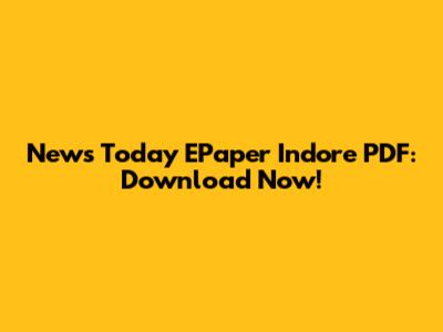News Today EPaper Indore PDF: Download Now!