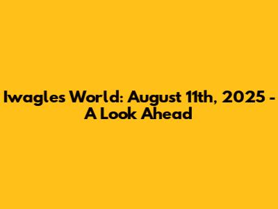 Iwagle's World: August 11th, 2025 - A Look Ahead
