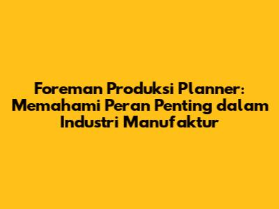Apa Itu Foreman Produksi Planner?