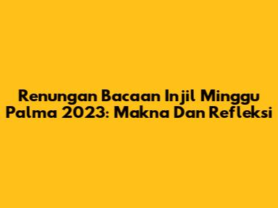 Renungan Bacaan Injil Minggu Palma 2023: Makna Dan Refleksi