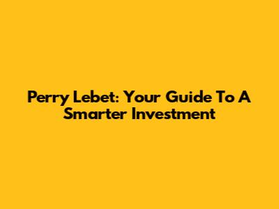 Perry Lebet: Your Guide To A Smarter Investment