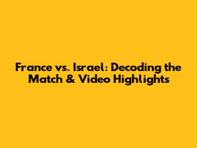 Hey guys! Ever get that feeling like you've missed out on something epic? Well, if you're a football fanatic, you might have felt that way about the recent France vs. Israel match. Let's dive deep into this game, dissecting the key moments, and, of course, checking out those video highlights. This article is your one-stop shop for everything you need to know, from the pre-match buzz to the post-game analysis. We're going to break down the strategies, the standout players, and the overall impact of this thrilling encounter. So, grab your snacks, settle in, and let's get started. This analysis will cover the match from every angle, making sure you don't miss a single detail. We'll cover everything, the starting lineups, tactical approaches, and individual performances. Trust me, you won't want to skip this!