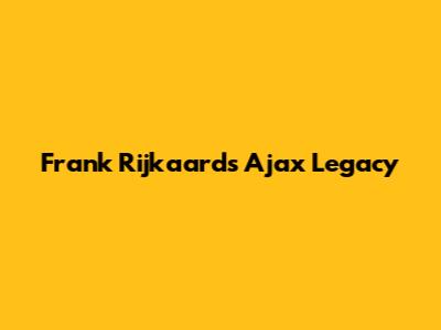 Frank Rijkaard's Ajax Legacy