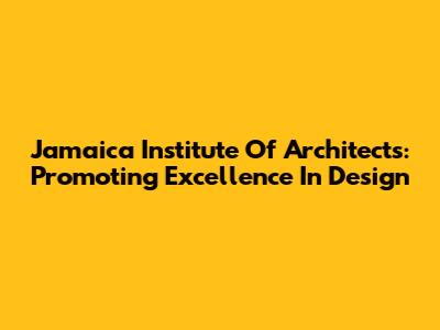 Jamaica Institute Of Architects: Promoting Excellence In Design