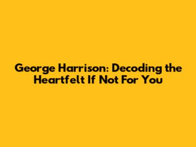 Hey music lovers! Let's dive deep into a classic, George Harrison's 'If Not For You'. This isn't just another song; it's a heartfelt expression of love and gratitude, wrapped in Harrison's signature musical style. Penned by Bob Dylan, this track found a special place in Harrison's repertoire, becoming a memorable part of his post-Beatles journey. So, grab your headphones, and let's explore what makes this song so enduring.