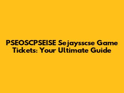 How to Snag Your PSEOSCPSEISE Sejaysscse Game Tickets