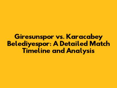 Alright guys, let's dive deep into the exciting world of football, focusing on the thrilling matchups between Giresunspor and Karacabey Belediyespor. This detailed analysis will walk you through the key moments, strategies, and overall performance of each team. We'll be looking at match timelines, significant events, and how the game unfolded. Get ready to explore the twists and turns of these football battles! This article is designed to give you a comprehensive understanding of the games, offering insights into player performances, tactical decisions, and the overall narrative of each match. We’ll break down the crucial phases of the game, from the opening whistle to the final moments, highlighting key events that shaped the outcome. Whether you're a die-hard fan or a casual observer, this analysis aims to provide you with valuable insights into the dynamics of Giresunspor versus Karacabey Belediyespor matches. We'll be using timelines to make it easy to follow the action, so you won’t miss a single moment of the drama.