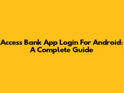 Access Bank App Login For Android: A Complete Guide