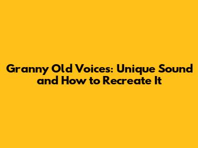 How to Recreate Granny Old Voices