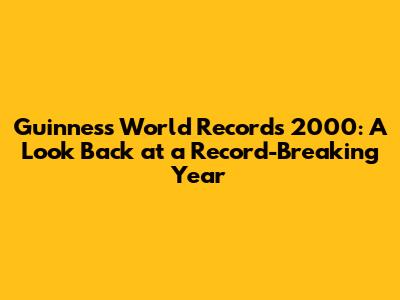 Hey there, record enthusiasts! Let's take a trip down memory lane and revisit the Guinness World Records 2000, shall we? This edition, published at the dawn of a new millennium, was a treasure trove of incredible feats, mind-boggling achievements, and some seriously quirky records that still make us chuckle today. The year 2000 was a pivotal moment, marking not just a change in the calendar but also a reflection of the rapid advancements and eccentricities of the late 20th century. So, grab your favorite snack, get comfy, and let's dive into the fascinating world of the Guinness World Records 2000! We'll explore some of the most memorable records, the trends of the time, and why this particular edition holds a special place in the hearts of record lovers around the globe. This isn't just about reading facts and figures, guys; it's about celebrating the human spirit's boundless capacity for creativity, determination, and a whole lot of weirdness. Ready to get started? Let's go!