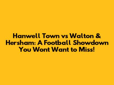 Hey football fanatics! Get ready for a clash that's got everyone buzzing – Hanwell Town taking on Walton & Hersham. This isn't just any game, guys; it's a fixture that promises passion, skill, and potentially some game-changing moments. We're diving deep into what makes this matchup so exciting, breaking down the teams, their recent form, and what we can expect on the pitch. So, grab your favorite snack, settle in, and let's get ready to talk some serious football!